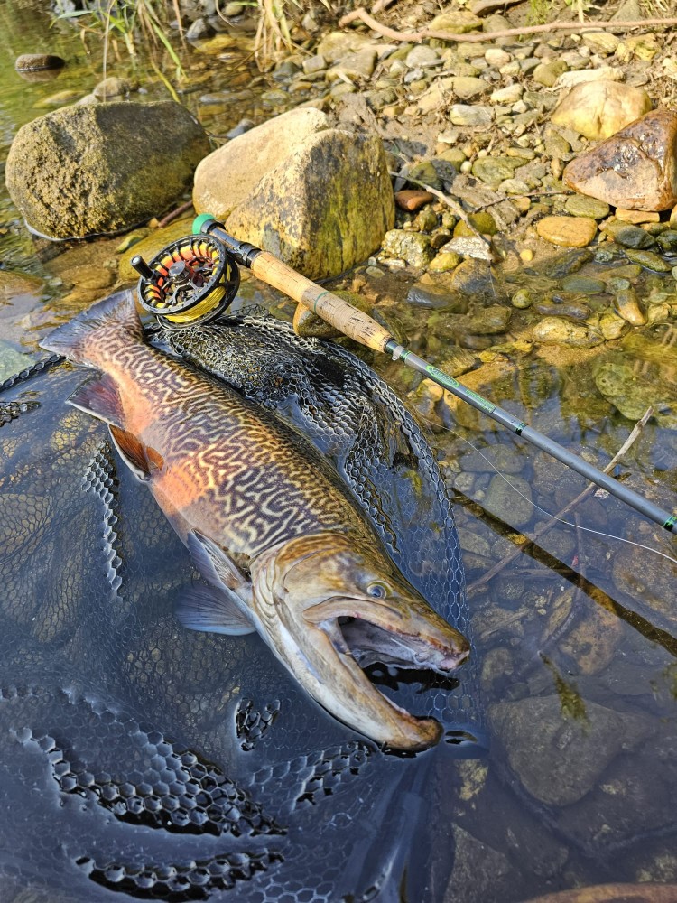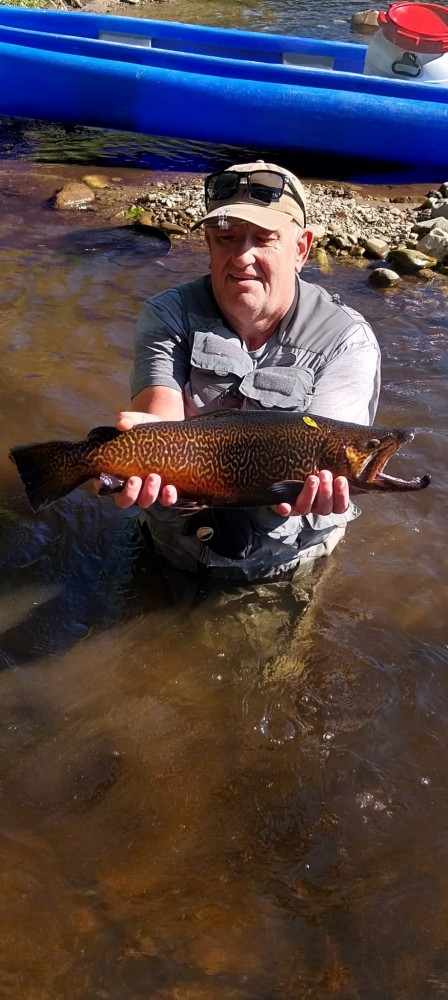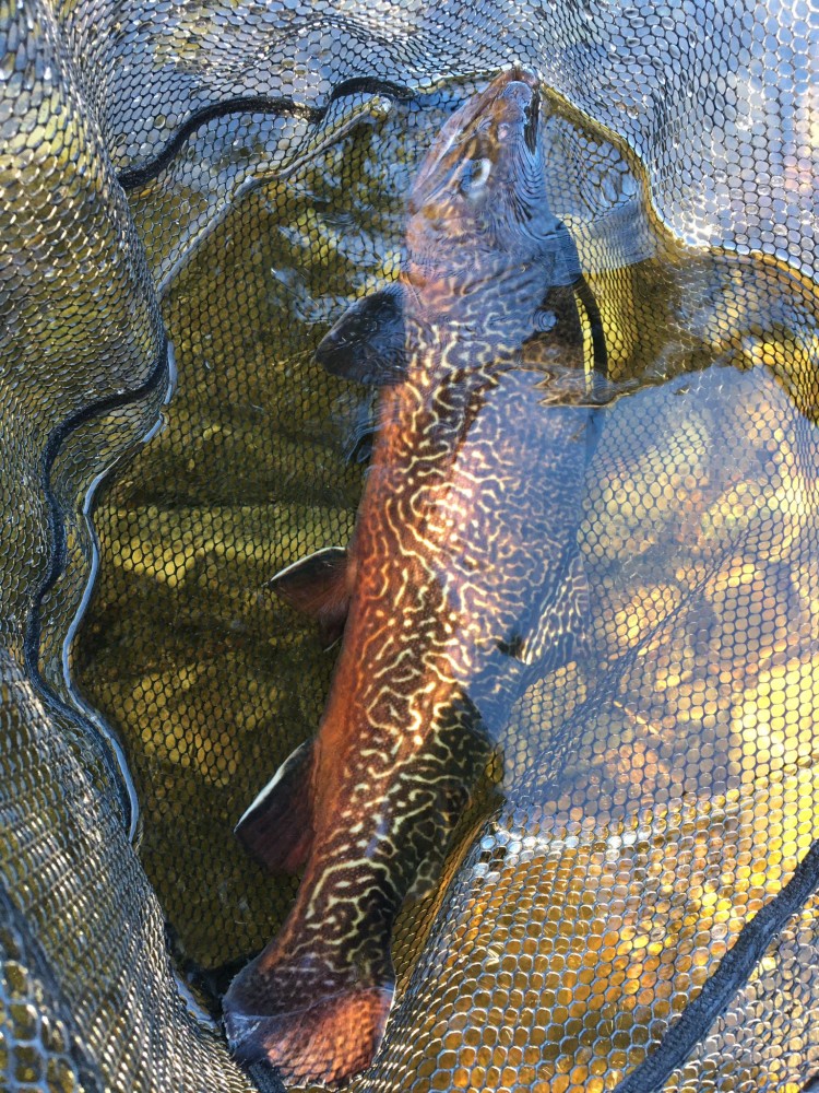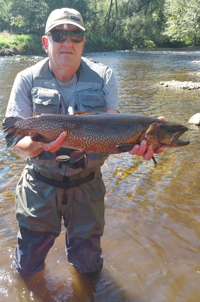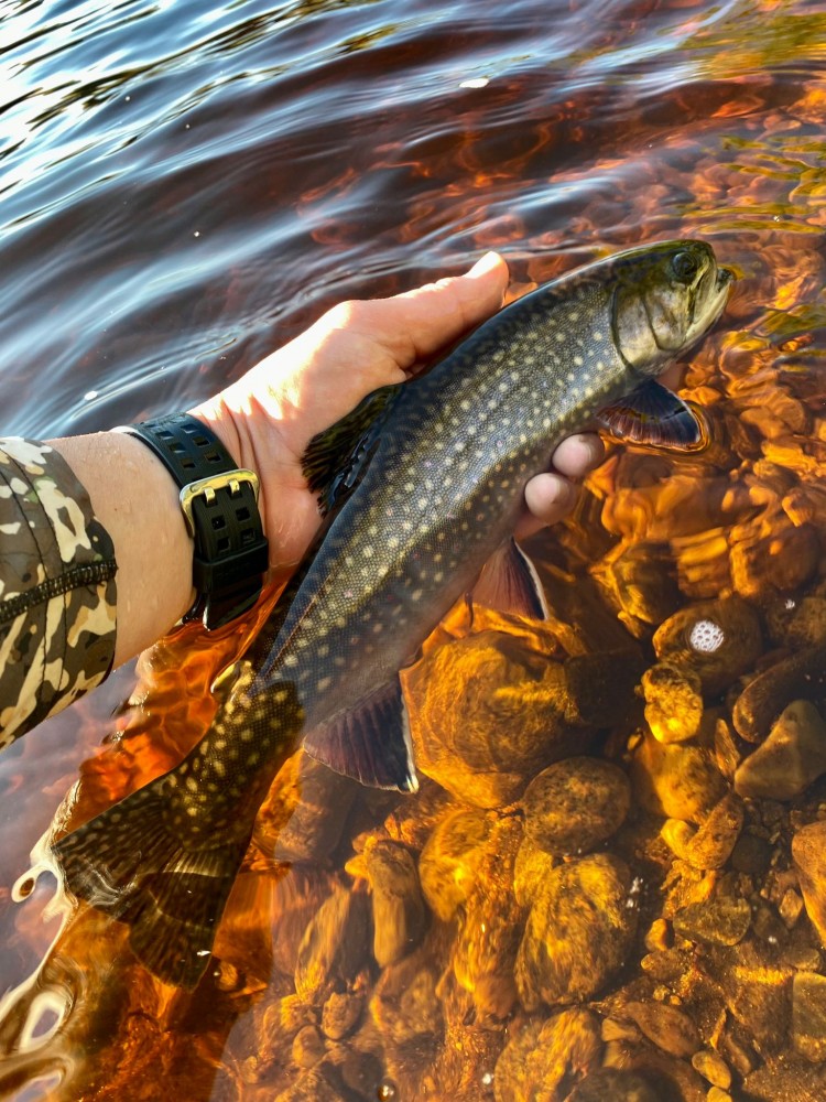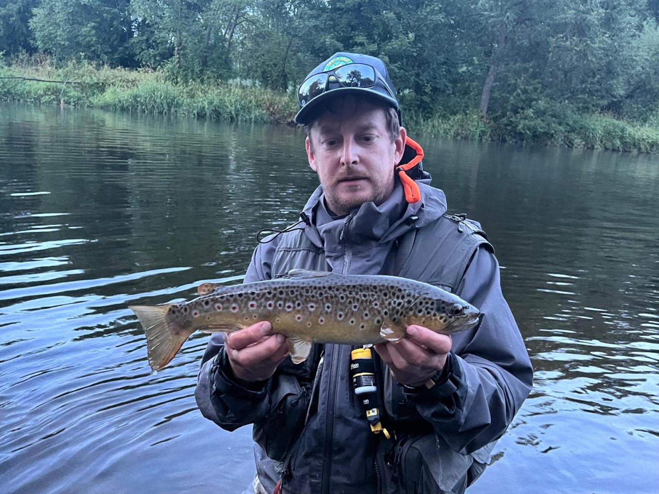 Krásný potočák z našeho revíru, ulovený na suchou mušku v podvečer.
